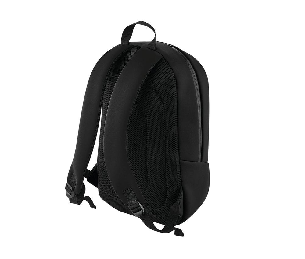 94% polyester / 6% elasthane. Laptop compatible up to 15.6". Contemporary scuba fabric. Zippered external stash pocket. Zippered main compartment. Internal slip pocket. Padded back panel. Padded adjustable shoulder straps. Grab handle.